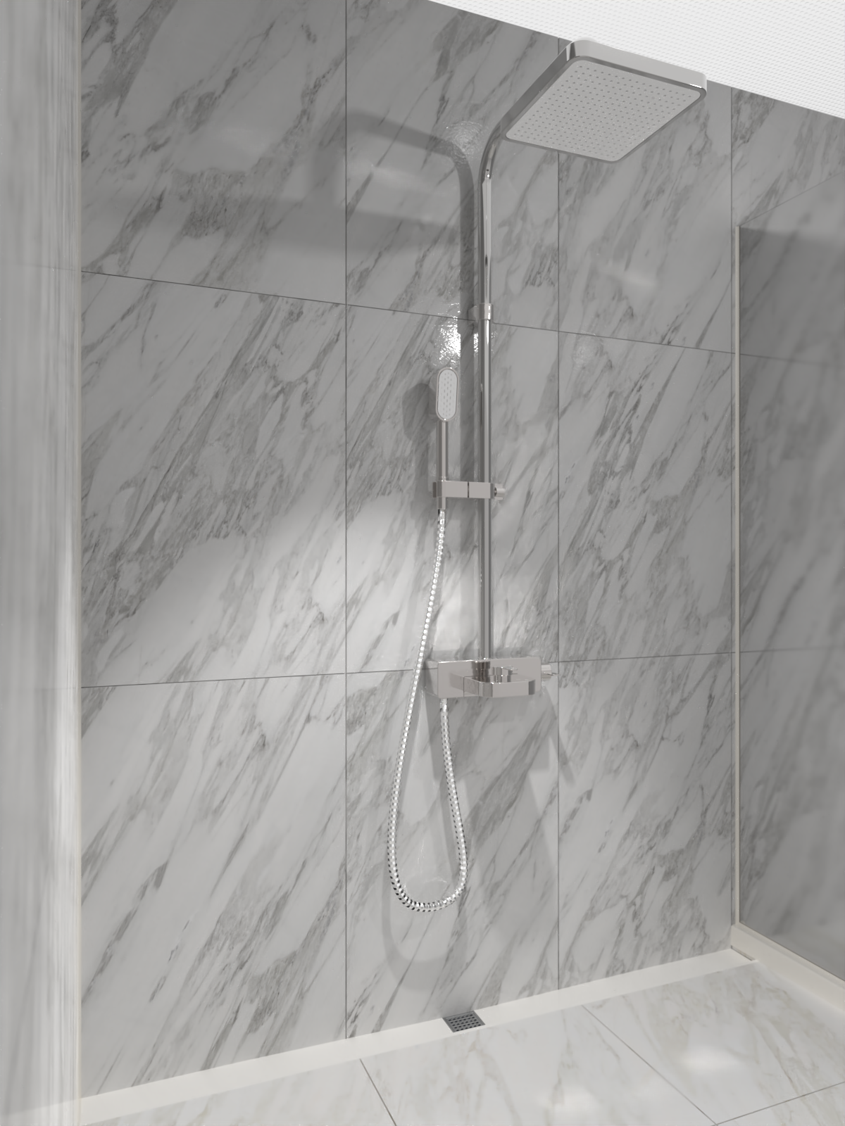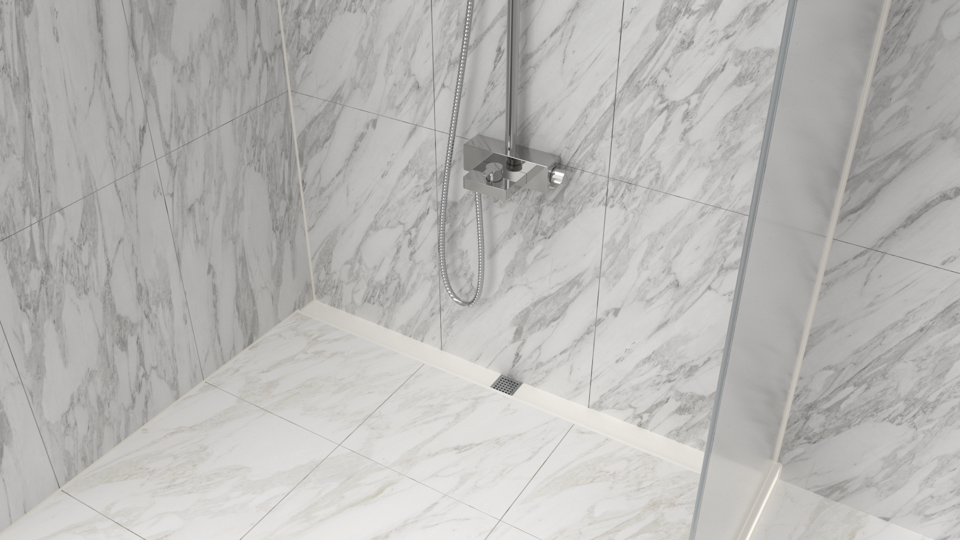 【浴水順】人造石截水槽有獨家洩水波製作工藝,根據案場落水孔位置,預先製作雙向洩水坡度,集水後能快速流向落水頭排出。泥作階段只需製作單向洩水波!