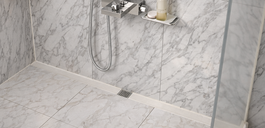 壁磚鋪設完成後,與地磚一起進場,鋪設浴水順截水槽後依序向外鋪設地磚,輕鬆簡單。安裝短片
